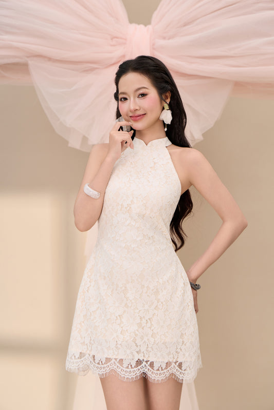 Tang Cheongsam Side Pleat Dress - Pink Jacquard
