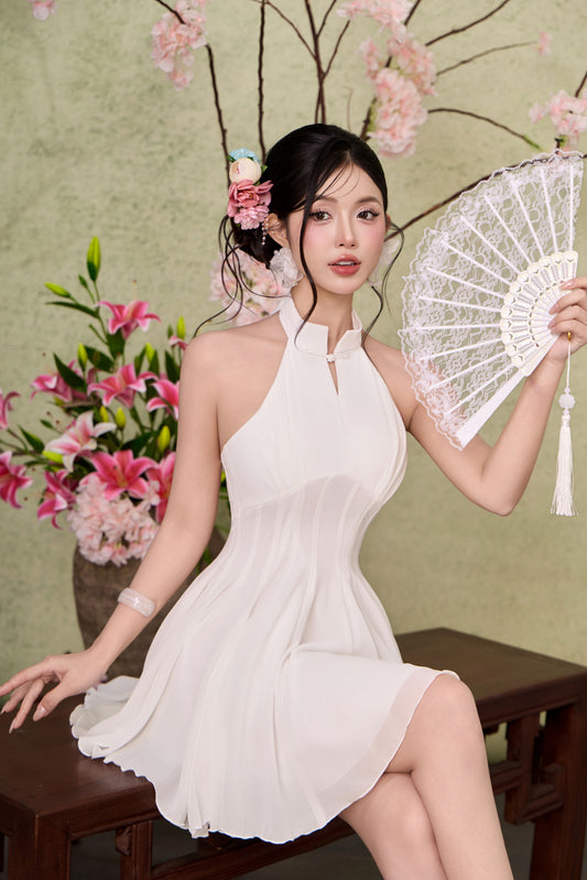 Fu Jaquard Corset Drop Waist Maxi Dress - Cream White