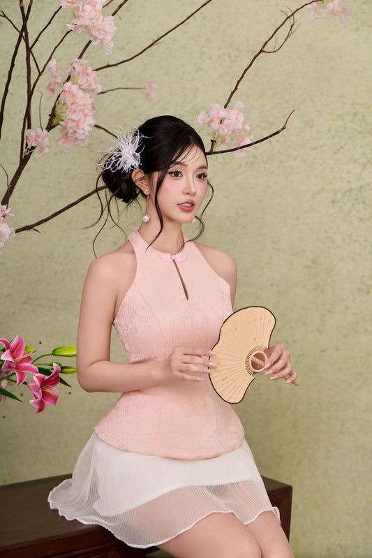 Fu Jaquard Corset Drop Waist Maxi Dress - Pink