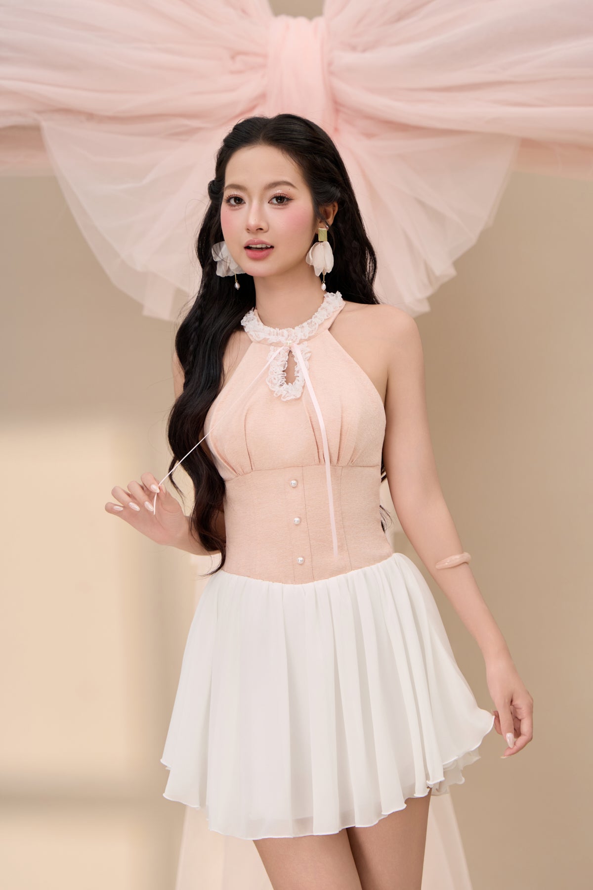 Xin Lace Halter Mini Dress - Pink
